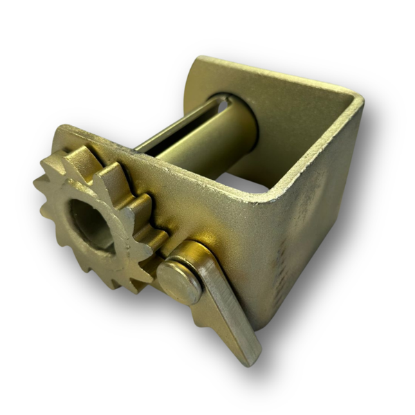 Processo simples e rápido para aplicar as cintas: passe a extremidade sem terminal da cinta pelo tambor da catraca, gire o mandril para firmar a cinta e tensione para travar a carga.