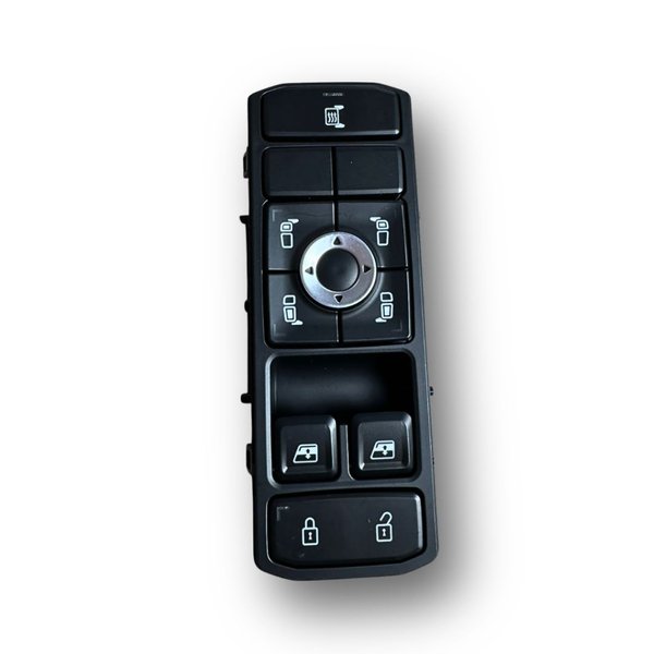 Aplicação : Na porta dianteira do lado esquerdo (lado do motorista) da cabine do caminhão Scania NTG. Esse comando geralmente integra, além do controle do vidro, funções como travas de porta, regulagem do retrovisor e, em alguns casos, desembaçador do retrovisor.