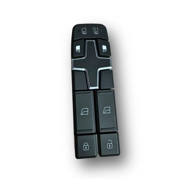 Aplicação : Na porta dianteira esquerda do caminhão Volvo FH “New” (lado do motorista). É o módulo que reúne várias funções: acionamento dos vidros elétricos, travas da porta, controle/ajuste do espelho retrovisor, possivelmente desembaçador, e outros botões adicionais dependendo da versão do caminhão.