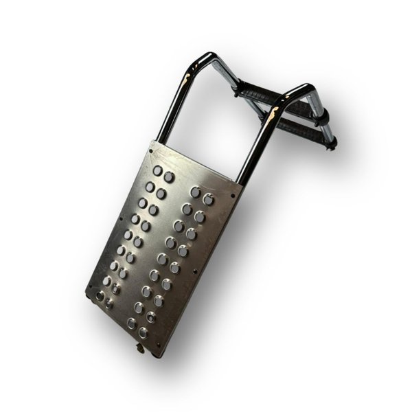 Aplicação : Normalmente na lateral do caminhão, junto ao tanque ARLA, como suporte de acesso ao tanque para abastecimento, manutenção ou inspeção. Também algumas plataformas incorporam degraus (2 degraus por exemplo) + a plataforma fixa sobre ou próxima ao tanque. Precisa fixar nos suportes existentes ou em suportes novos específicos; adaptação pode requerer furação ou soldagem.