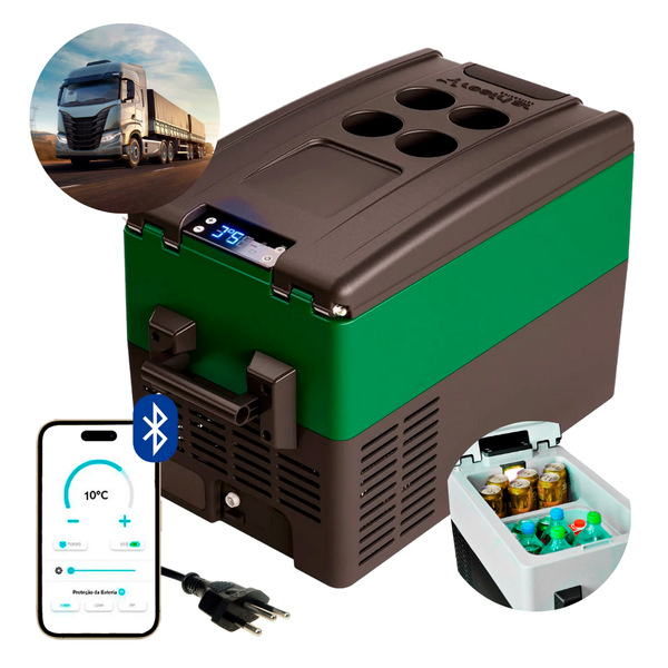 Geladeira Portátil Caminhão 31 Litros Quadrivolt 12v/24v/110v/220v Resfriar Verde C/Bluetooth