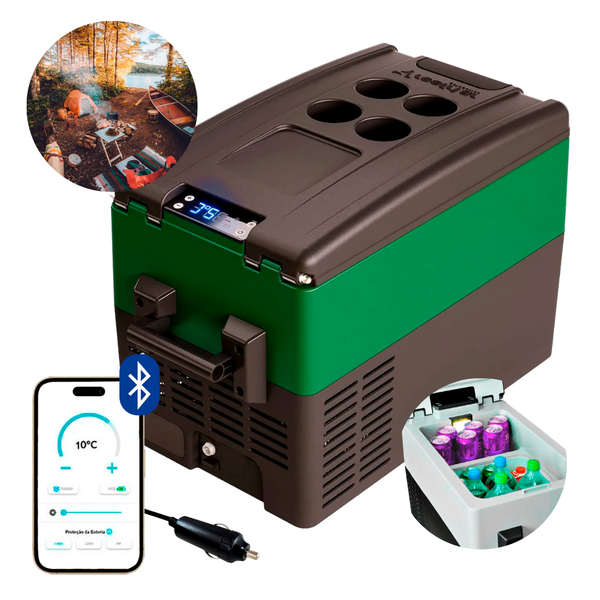 Geladeira Portátil P/Camping 31 Litros 12v/24v Resfriar Verde C/Bluetooth