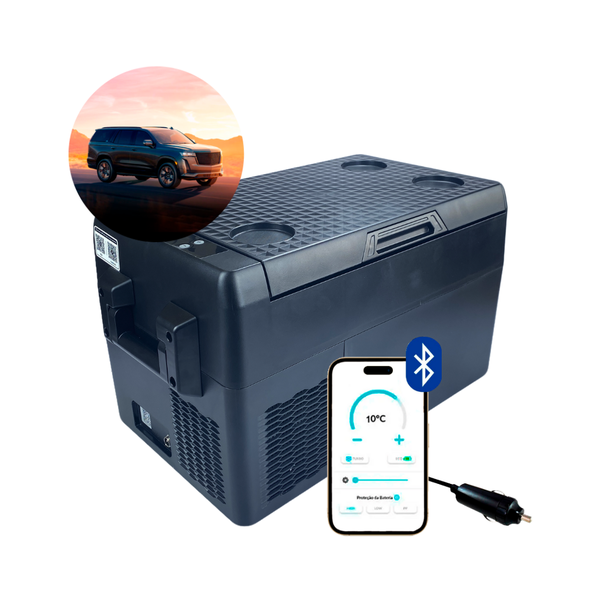 A geladeira portátil 26 litros com controlador digital possui um design arrojado, funções claras, precisas e acessíveis ao seu usuário. Esse modelo de geladeira conserva alimentos e bebidas sempre frescos, podendo também ser utilizada como congelador, adaptando-se as necessidades do usuário. Este produto possui um amplo espaço interno com capacidade de 26 litros e é um equipamento de fácil transporte, tornando-se perfeita para quem não dispensa a comodidade na hora de viajar.