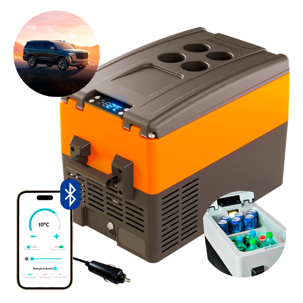 Geladeira Portátil P/Carro 31 Litros 12v/24v Resfriar Laranja C/Bluetooth
