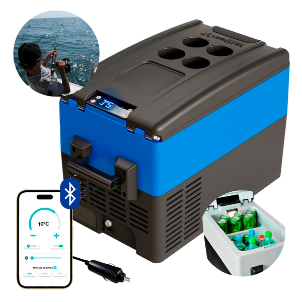 Geladeira Portátil P/Pesca 31 Litros 12v/24v Resfriar Azul C/Bluetooth
