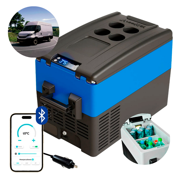 Geladeira Portátil P/Van 31 Litros 12v/24v Resfriar Azul C/Bluetooth