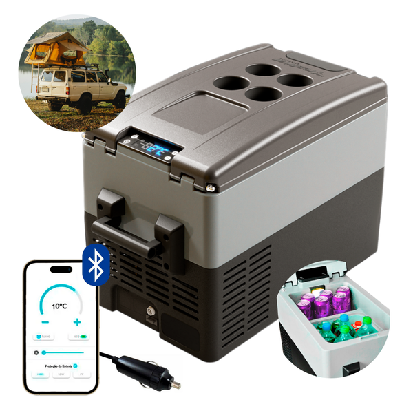 Geladeira Portátil P/Viagens 31 Litros 12v/24v Resfriar Cinza C/Bluetooth