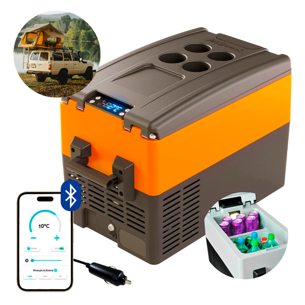 Geladeira Portátil P/Viagens 31 Litros 12v/24v Resfriar Laranja C/Bluetooth