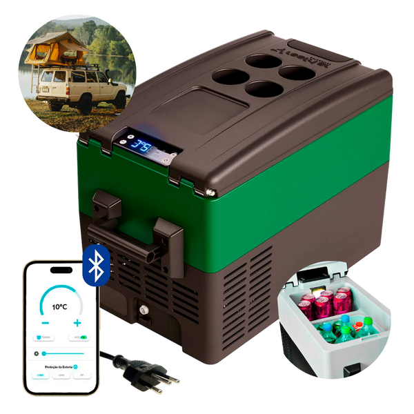 Geladeira Portátil P/Viagens 31 Litros Quadrivolt 12v/24v/110v/220v Resfriar Verde C/Bluetooth