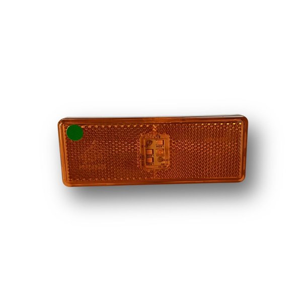 Aplicação : Lateral da cabine/carroceria, em posição de estribo ou coluna. Serve como lanterna delimitadora e de sinalização lateral (seta/pisca) e possui retrorrefletor para maior visibilidade