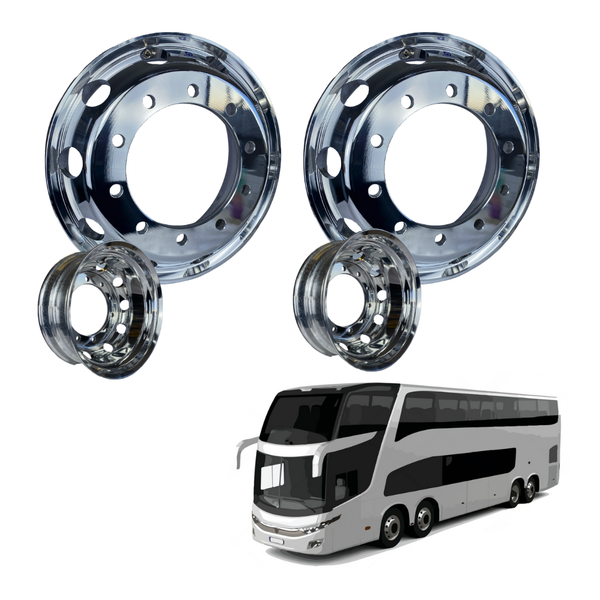 Kit 2 Rodas de Aluminio Alcoa P/ Onibus Auto Brilho 22,5 x 8,25